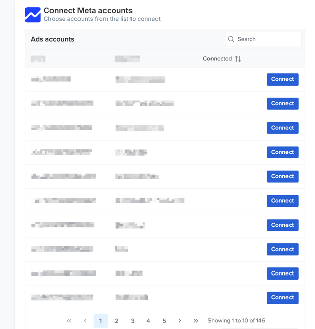 Click "Connect to Meta". You will then be taken to the Meta login window. Log in to Facebook, and once the authentication is complete, you will be redirected back to ProfitMetrics. From there, simply select the ad account you want to connect, and then connect the Conversion Booster, which will serve as the tracking for Meta.