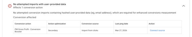 This can also occur if Enhanced Conversions isn't configured correctly in ProfitMetrics.